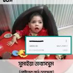 আমরা এই ছোট্ট সোনামণির জন্য এক মাসের ১২ টি থেরাপি বাবদ মোট ৪,৮০০/- টাকা দিতে পেরেছি।